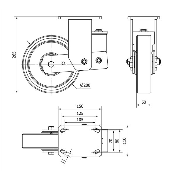 Rueda poliuretano fija Alex diametro 200 mm. modelo 2-3942