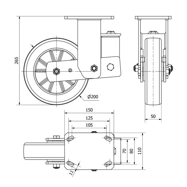 Rueda poliuretano fija Alex diametro 200 mm. modelo 2-3951