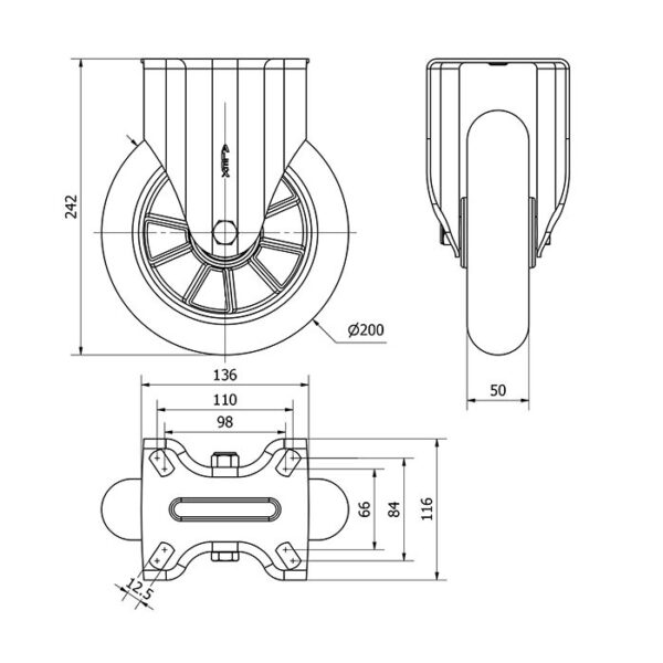 Rueda poliuretano fija Alex diametro 200 mm. modelo 2-3984