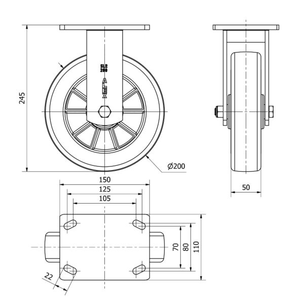 Rueda poliuretano fija Alex diametro 200 mm. modelo 2-4192
