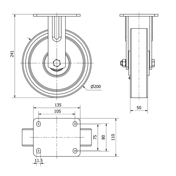 Rueda poliuretano fija Alex diametro 200 mm. modelo 4-0811