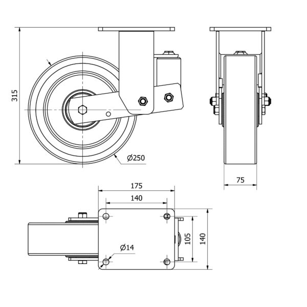 Rueda poliuretano fija Alex diametro 250 mm. modelo 2-3946