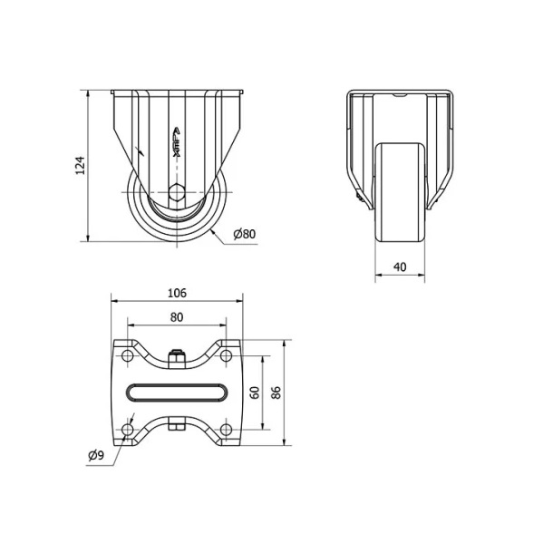 Rueda poliuretano fija Alex diametro 80 mm. 2-0600 EAN 8422202206004