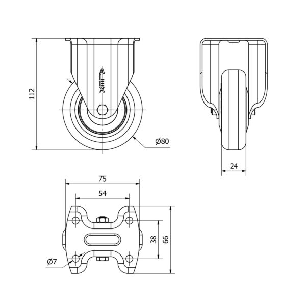 Rueda poliuretano fija Alex diametro 80 mm. modelo 2-2473
