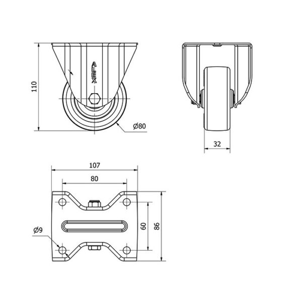 Rueda poliuretano fija Alex diametro 80 mm. modelo 2-2822