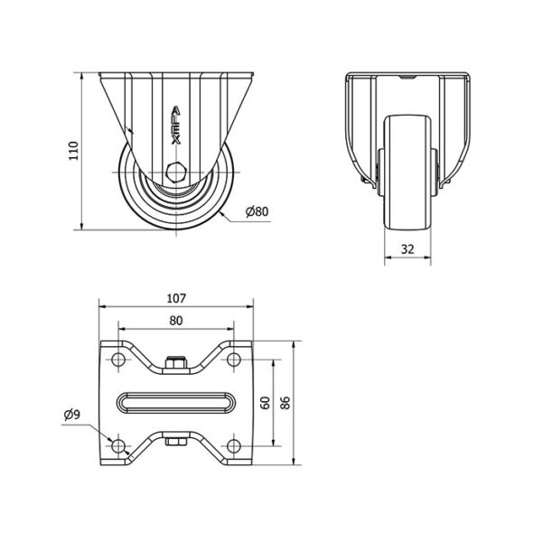 Rueda poliuretano fija Alex diametro 80 mm. modelo 2-2947