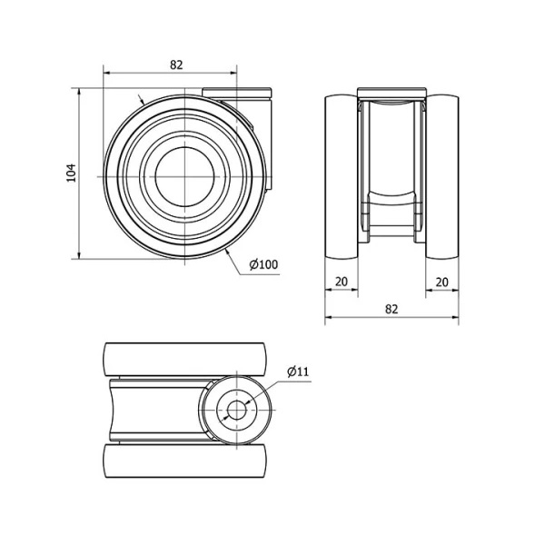 Rueda poliuretano giratoria Alex diametro 100 mm. 2-0095
