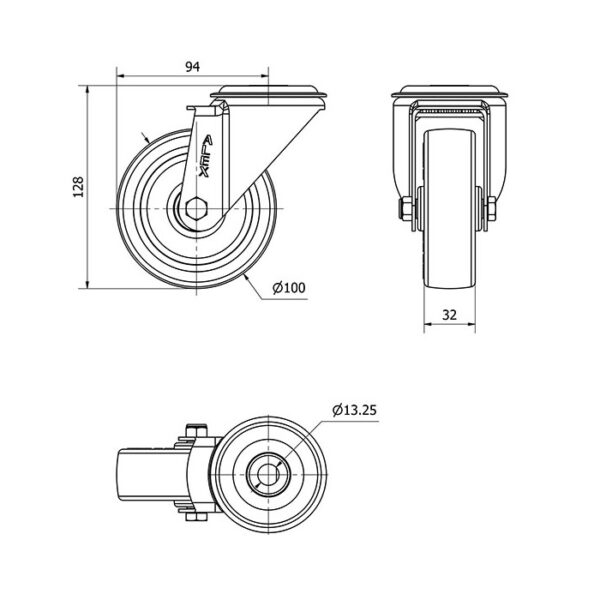 Rueda poliuretano giratoria Alex diametro 100 mm. modelo 2-2436