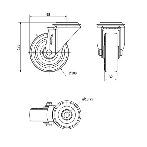 Rueda poliuretano giratoria Alex diametro 100 mm. modelo 2-2939
