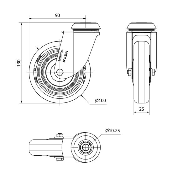 Rueda poliuretano giratoria Alex diametro 100 mm. modelo 2-3056