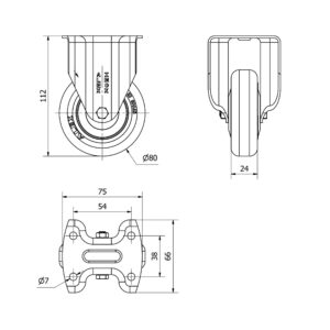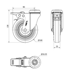 Rueda poliuretano giratoria Alex diametro 100 mm. modelo 2-3056