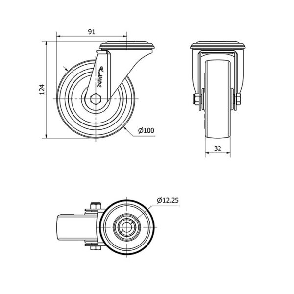Rueda poliuretano giratoria Alex diametro 100 mm. modelo 2-4119