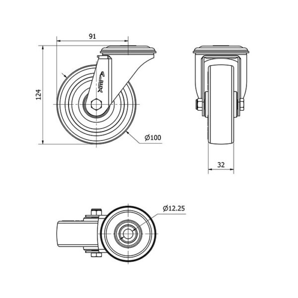 Rueda poliuretano giratoria Alex diametro 100 mm. modelo 2-4171