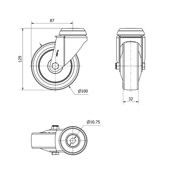 Rueda poliuretano giratoria Alex diametro 100 mm. modelo 2-4676