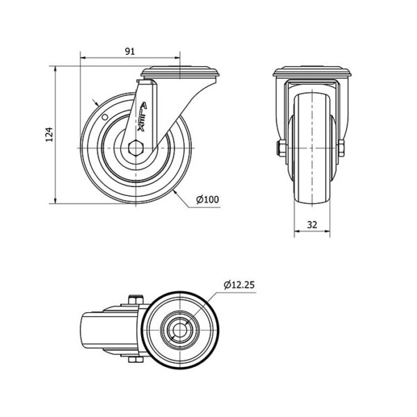 Rueda poliuretano giratoria Alex diametro 100 mm. modelo 2-4710