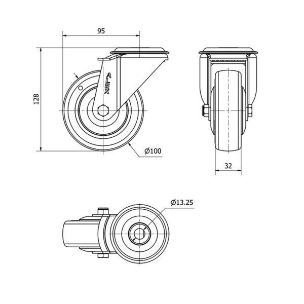 Rueda poliuretano giratoria Alex diametro 100 mm. modelo 2-4715