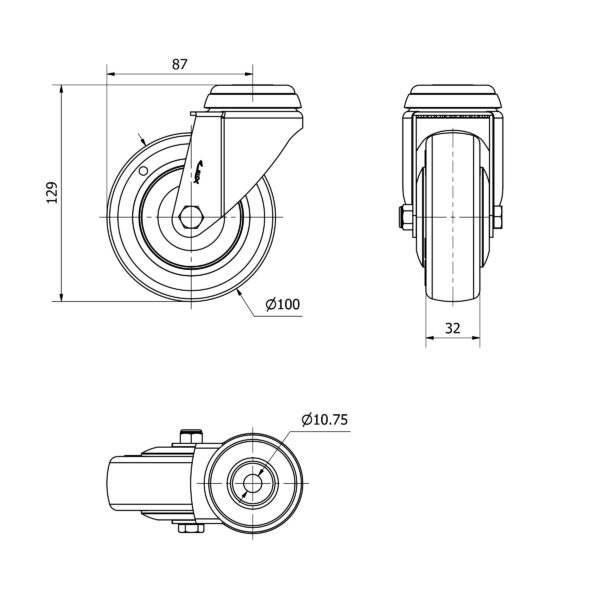 Rueda poliuretano giratoria Alex diametro 100 mm. modelo 2-4729