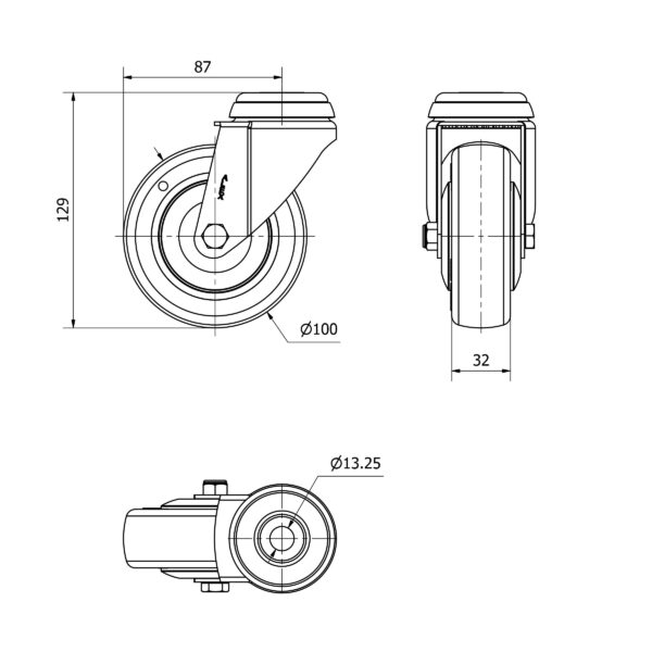 Rueda poliuretano giratoria Alex diametro 100 mm. modelo 2-4731