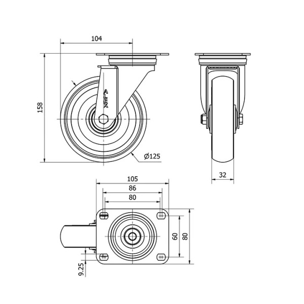 Rueda poliuretano giratoria Alex diametro 125 mm. 2-0578