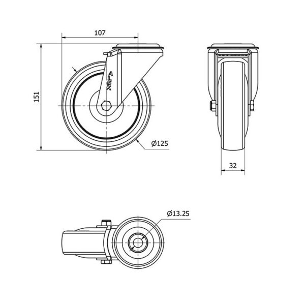 Rueda poliuretano giratoria Alex diametro 125 mm. modelo 2-2024