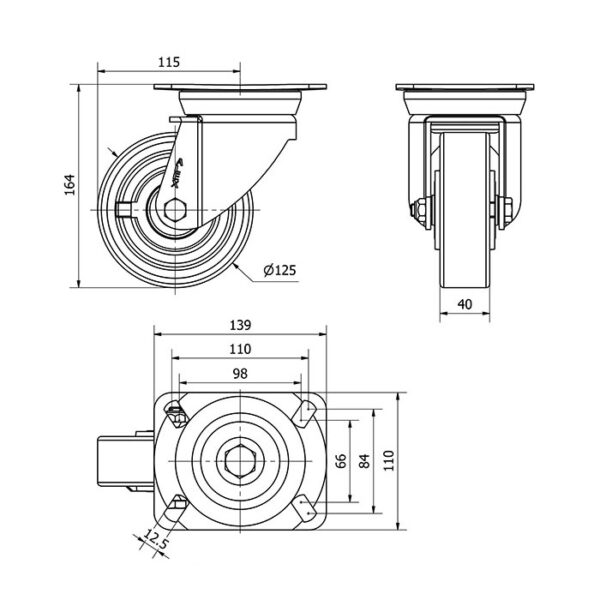 Rueda poliuretano giratoria Alex diametro 125 mm. modelo 2-2055