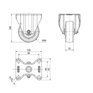 Rueda poliuretano giratoria Alex diametro 125 mm. modelo 2-3094