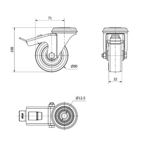 Rueda poliuretano giratoria Alex diametro 125 mm. modelo 2-3103