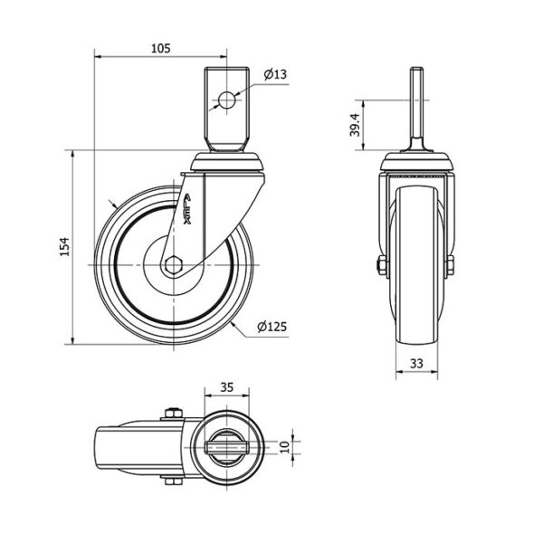 Rueda poliuretano giratoria Alex diametro 125 mm. modelo 2-3506 EAN 8422202235066