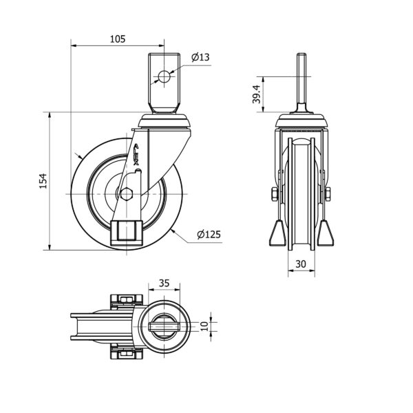 Rueda poliuretano giratoria Alex diametro 125 mm. modelo 2-3507 EAN 8422202235073