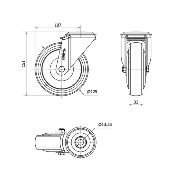 Rueda poliuretano giratoria Alex diametro 125 mm. modelo 2-4720