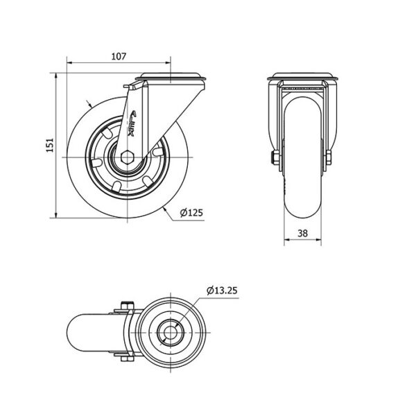 Rueda poliuretano giratoria Alex diametro 125 mm. modelo 2-4816