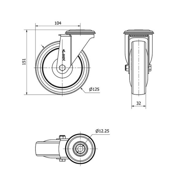 Rueda poliuretano giratoria Alex diametro 125 mm. modelo 2-4881