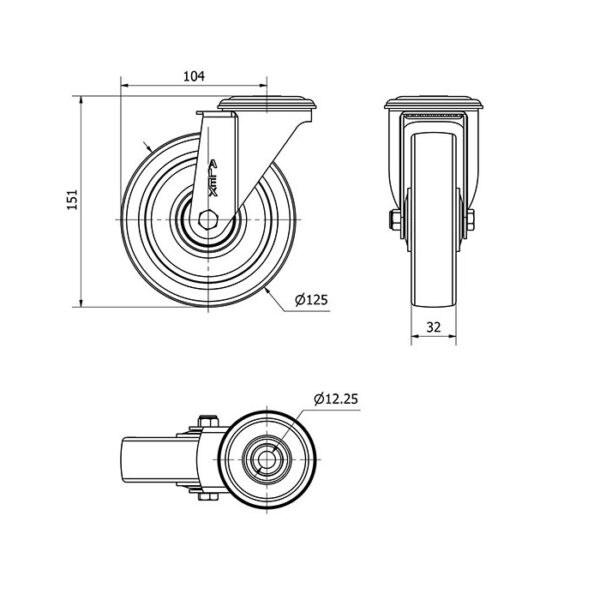 Rueda poliuretano giratoria Alex diametro 125 mm. modelo 2-4896