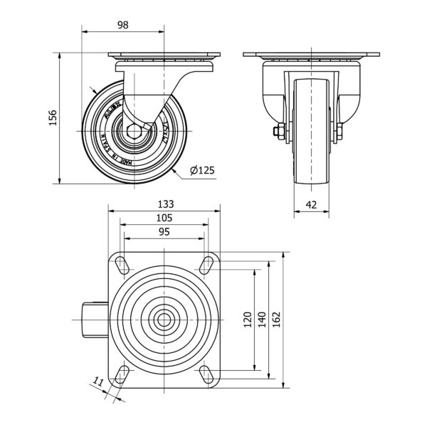 Rueda poliuretano giratoria Alex diametro 125 mm. modelo 4-0264