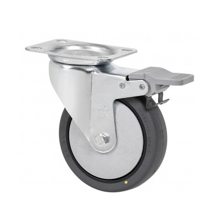 Ruedas conductivas con núcleo de polipropileno y banda de poliuretano gris inyectado, especialmente indicadas para soportar cargas de hasta 125 Kg.