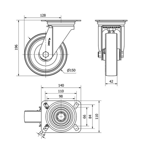 Rueda poliuretano giratoria Alex diametro 150 mm. modelo 2-1174