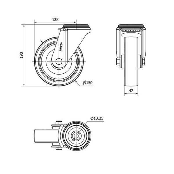 Rueda poliuretano giratoria Alex diametro 150 mm. modelo 2-2843