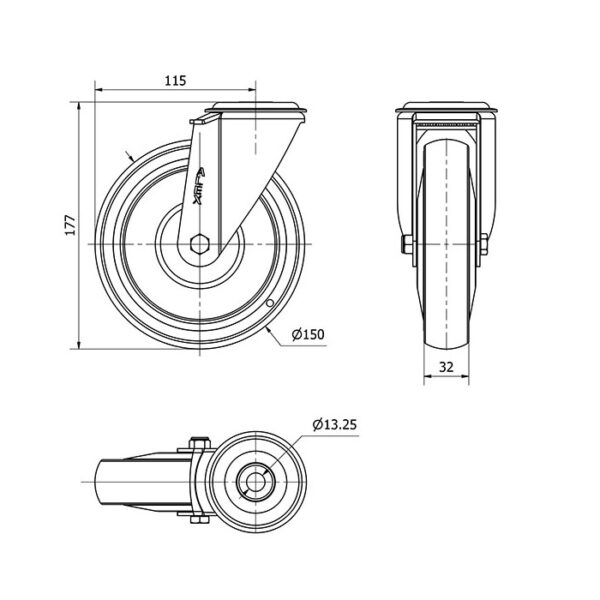 Rueda poliuretano giratoria Alex diametro 150 mm. modelo 2-4725