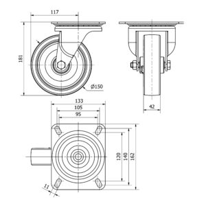 Rueda poliuretano giratoria Alex diametro 150 mm. modelo 4-0266