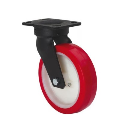 Las ruedas Alex serie GT-PO son ruedas con el núcleo de nylon blanco y banda de poliuretano rojo con dureza de 90-95? shore A, indicadas para soportar altas cargas hasta 600 Kg. Se utilizan en útiles de transporte logístico, exteriores, carroceros, gradas móviles, plataformas elevadoras, maquinaria pesada, grúas móviles, mesas elevadoras y caldererías. Principalmente en el sector aeronáutico, ferroviario y de la automoción. PO: funcionamiento elástico y silencioso. Ofrece gran protección de los suelos. Gran duración al desgaste.