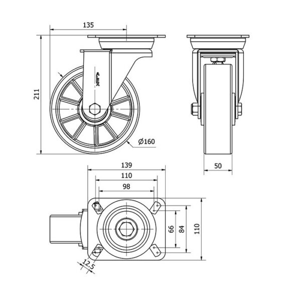 Rueda poliuretano giratoria Alex diametro 160 mm. modelo 2-3607 EAN 8422202236070