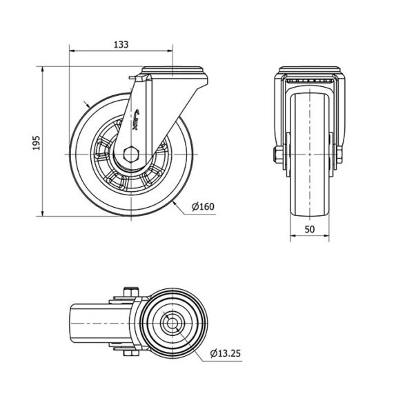 Rueda poliuretano giratoria Alex diametro 160 mm. modelo 2-3928