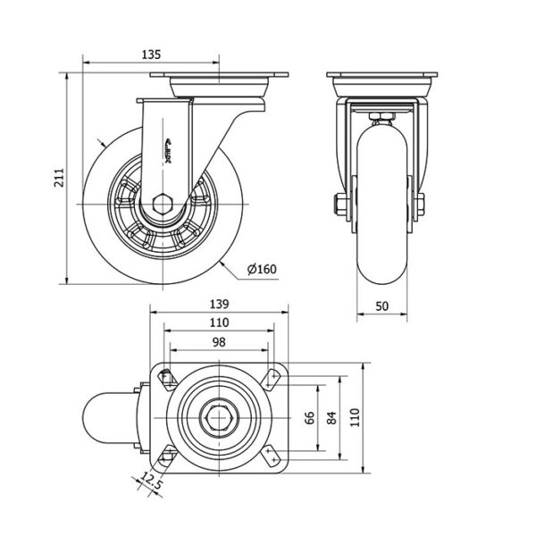 Rueda poliuretano giratoria Alex diametro 160 mm. modelo 2-3976 EAN 8422202239767