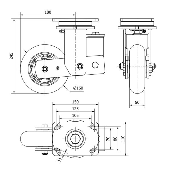 Rueda poliuretano giratoria Alex diametro 160 mm. modelo 2-4053