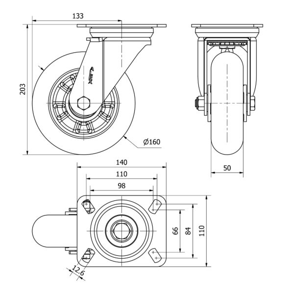 Rueda poliuretano giratoria Alex diametro 160 mm. modelo 2-4380 EAN 8422202243801
