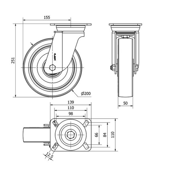 Rueda poliuretano giratoria Alex diametro 200 mm. modelo 2-0317