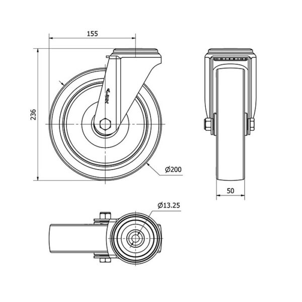 Rueda poliuretano giratoria Alex diametro 200 mm. modelo 2-2848