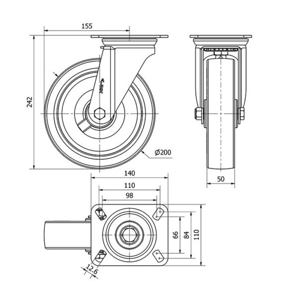 Rueda poliuretano giratoria Alex diametro 200 mm. modelo 2-3450
