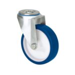 La serie de ruedas Alex ZVI INOX-POA son de poliuretano inyectado blando azul, con todos sus componentes de acero inoxidable (AISI-304), indicadas para soportar cargas hasta 250 Kg. Se utilizan en exteriores, carros de transporte de alimentación, cantinas, comedores, restaurantes, empresas de alimentación, máquinas de embalajes, cintas transportadoras, construcciones inoxidables, maquinaria ligera para la construcción, contenedores, jaulas de transporte, granjas avícolas, químicas, cadenas alimentación, frigoríficos, arcones y congeladores. POA: Silenciosa, limpia y elástica, con gran duración al desgaste. Alta resistencia a los aceites y grasas..