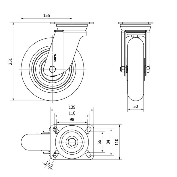 Rueda poliuretano giratoria Alex diametro 200 mm. modelo 2-3529 EAN 8422202235295
